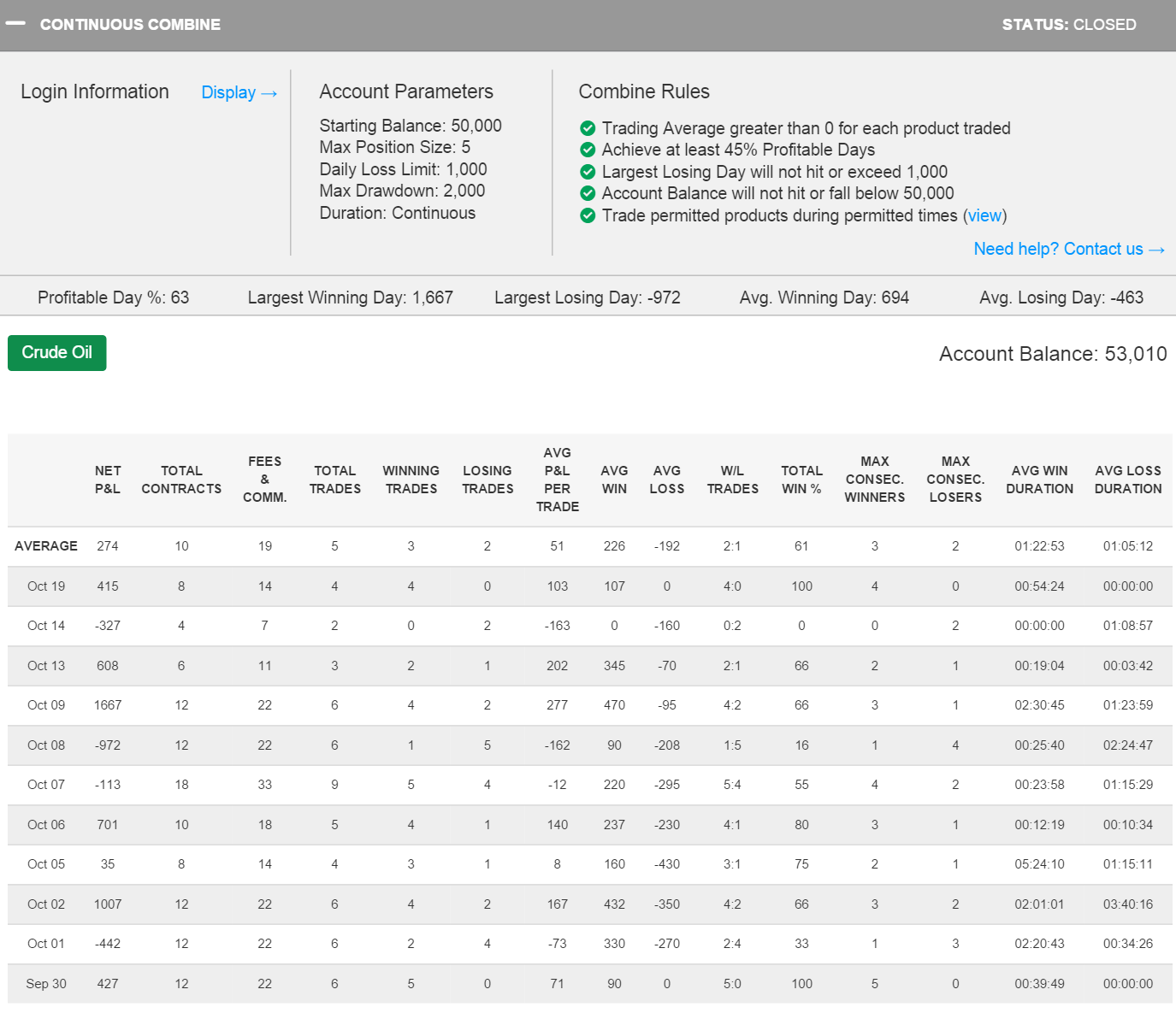 A former Marine and State Department Threat Protection Operator, Contract Killer trades CL and ES while using the ACD method with tight stops, along with some momentum based indicators. He also uses Market Profile® and Volume Profile.