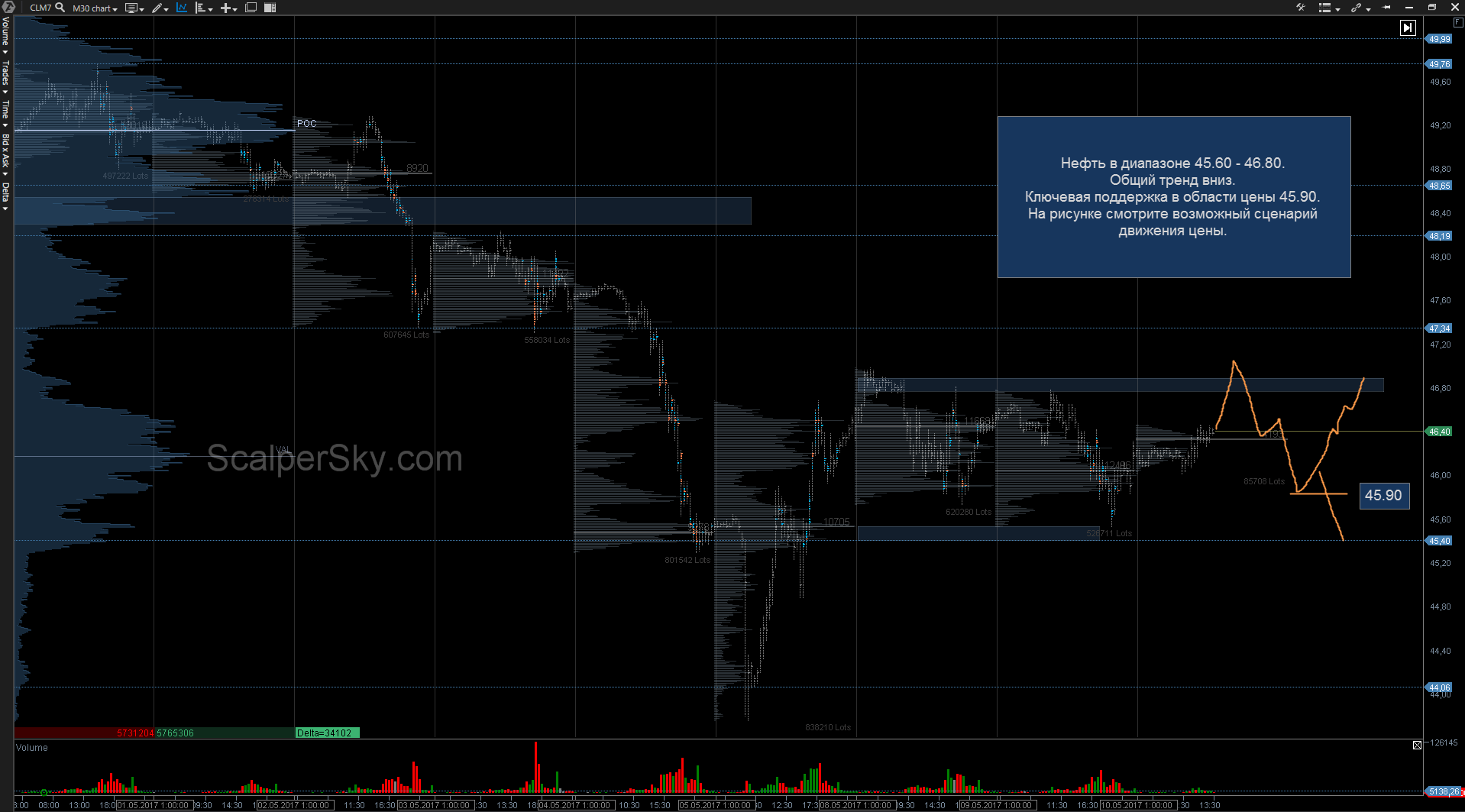 Именно оттуда было два резких падения цены с хорошим диапазоном.