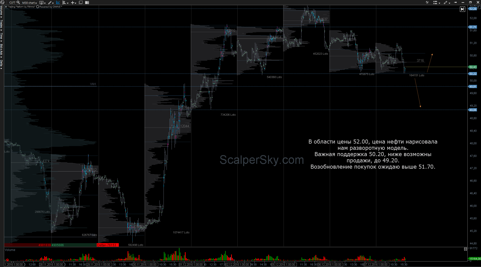В области цены 52.00, цена нефти нарисовала нам разворотную модель.