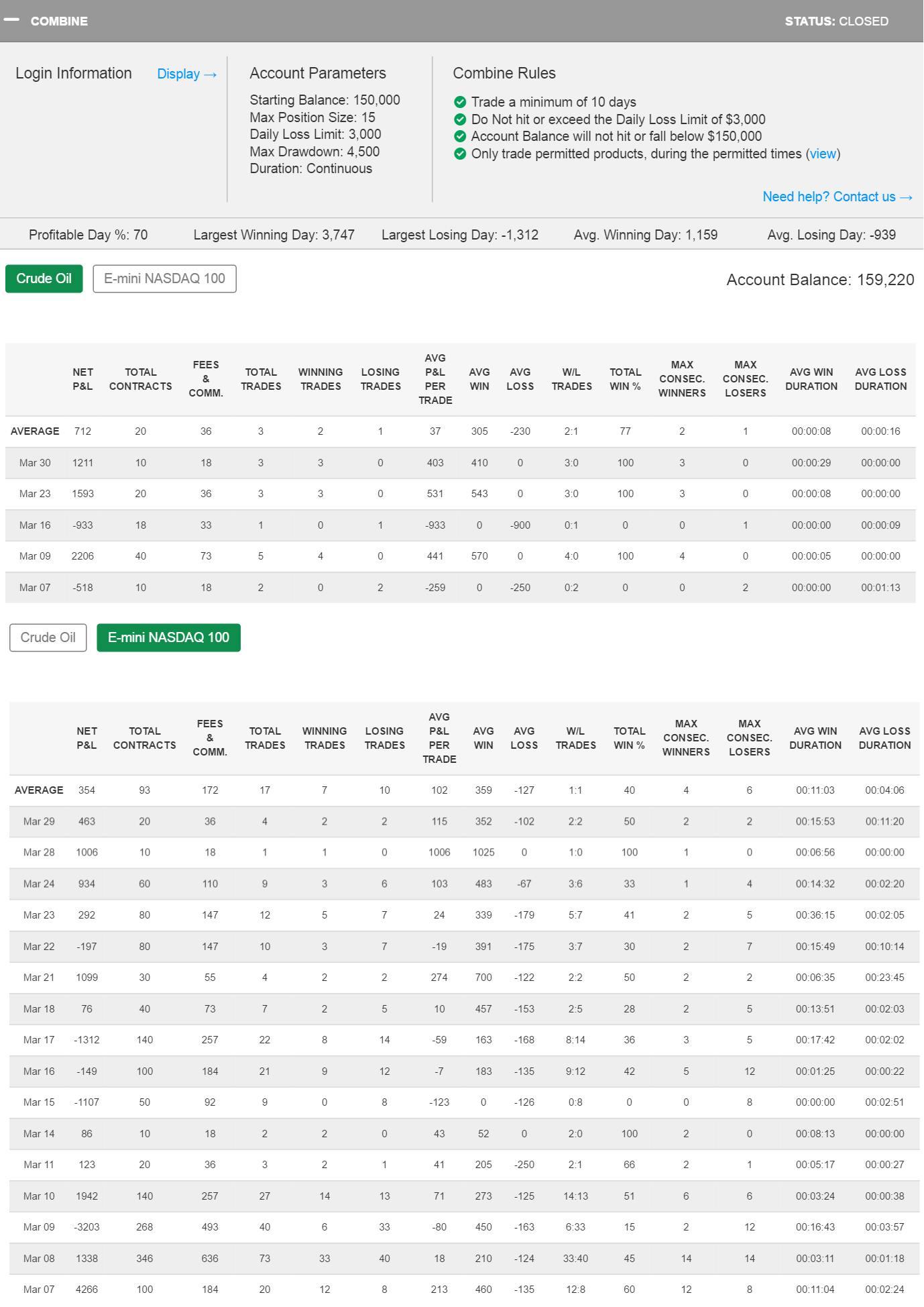 Компания ТопстепТрейдер рада приветствовать shaneaw15! Он предпочитает торговать нефтью, фьючерсами ES и E-mini NASDAQ. Иногда, он также торгует золотом. Shaneaw15 использует платформу NinjaTrader в своей торговле. Мы будем рады увидеть прогресс у shaneaw15!