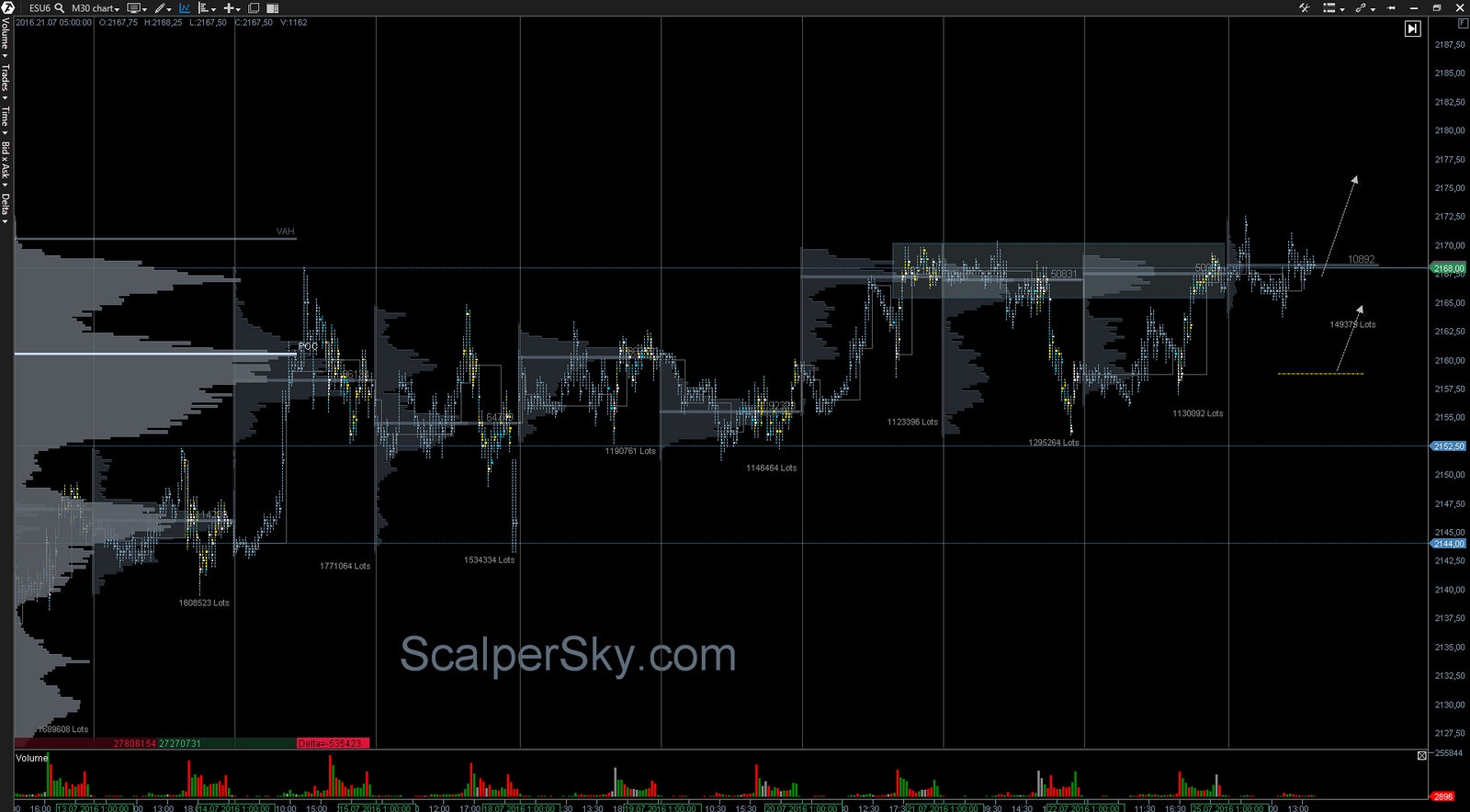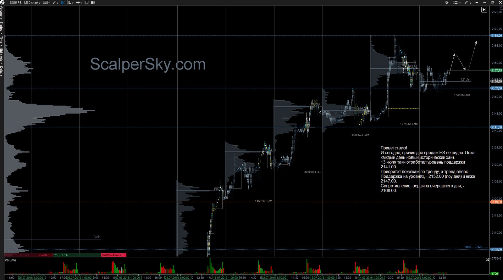 Ключевые уровни для покупателей, - 2164.00 и 2160.50 (объем контракта).