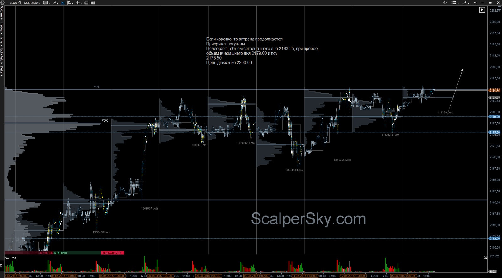 Поддержка, объем сегодняшнего дня 2183.25, при пробое, объем вчерашнего дня 2179.00 и лоу 2175.50.