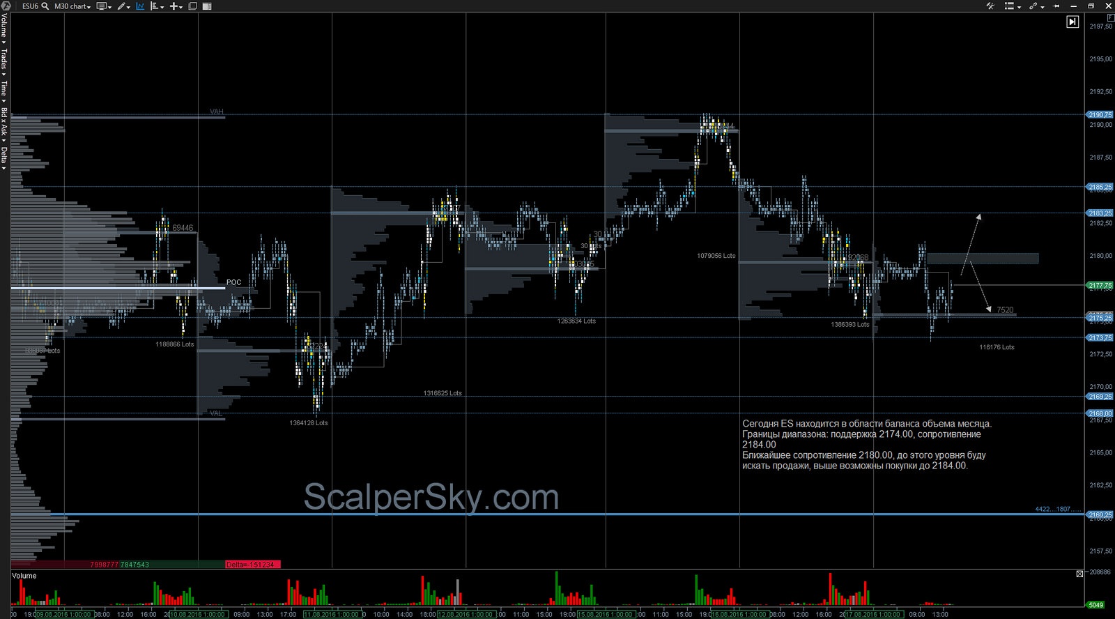 Сегодня ES находится в области баланса объема месяца.