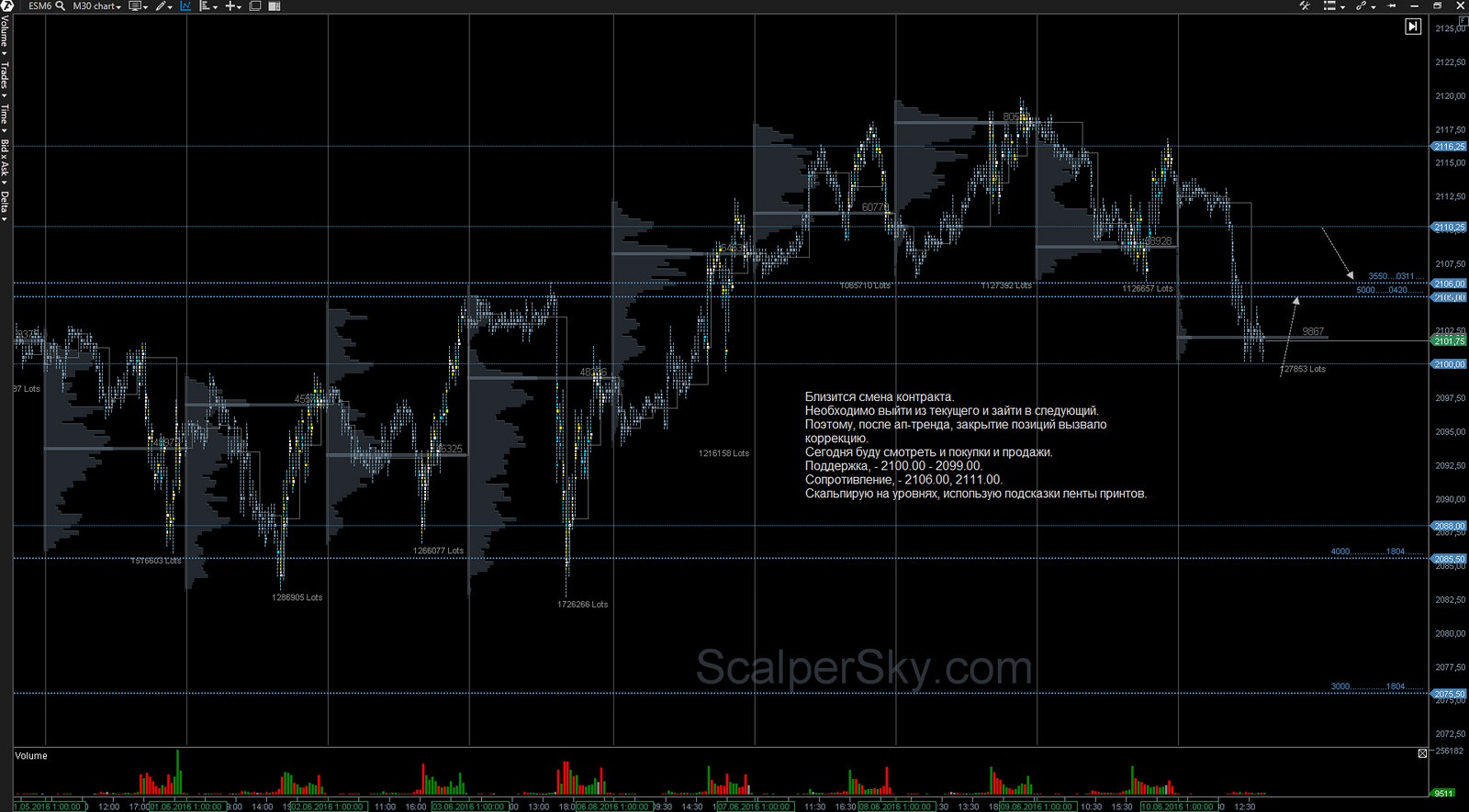 Обзор e-mini S&P500 на 1 июня 2016 года.