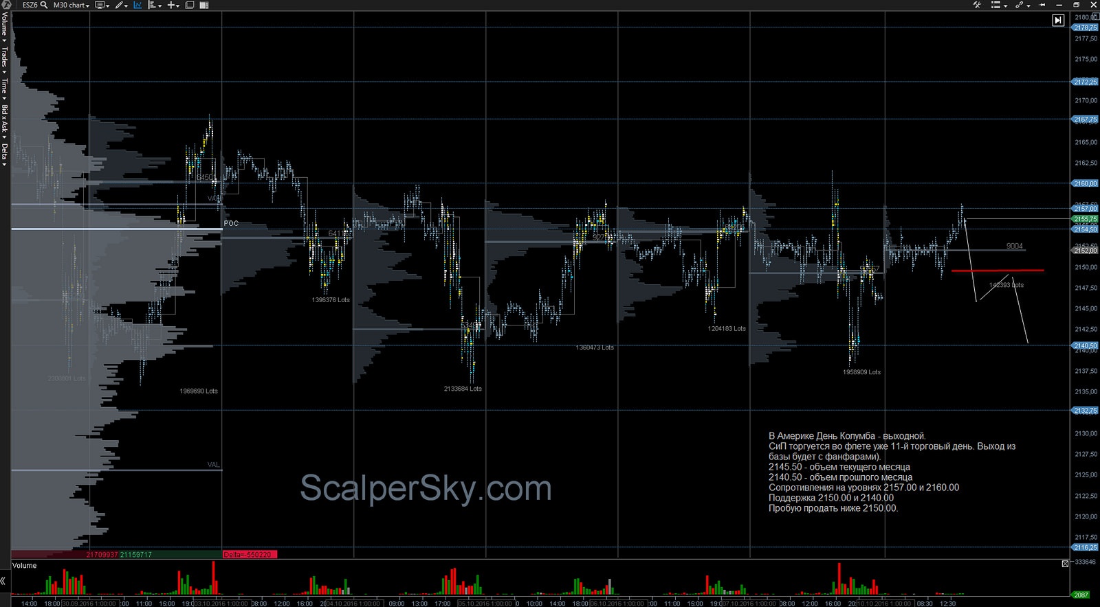 Обзор e-mini S&P 500 на 10 октября 2016 года.
