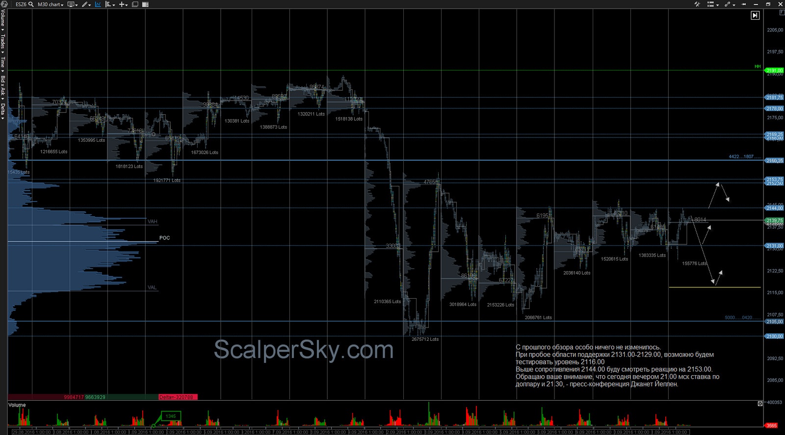 Обзор e-mini S&P 500 на 21 сентября 2016 года.