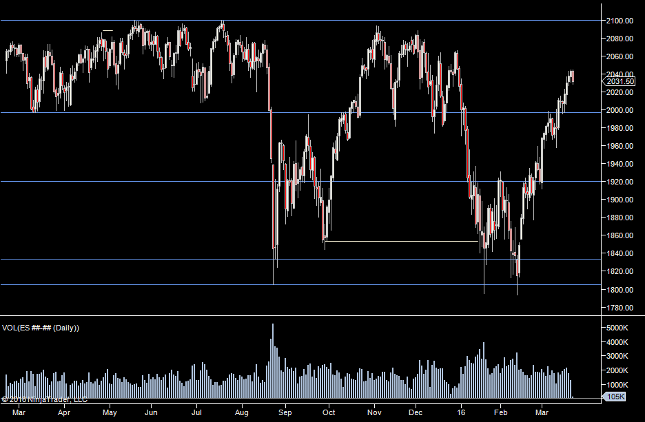 OK - so same thing as previous days this week, still biased towards us being on the way to 2100. Volume was a little higher yesterday but way below what we've been seeing over the past months. Still have an eye on 2028.75 and 2011 for support.