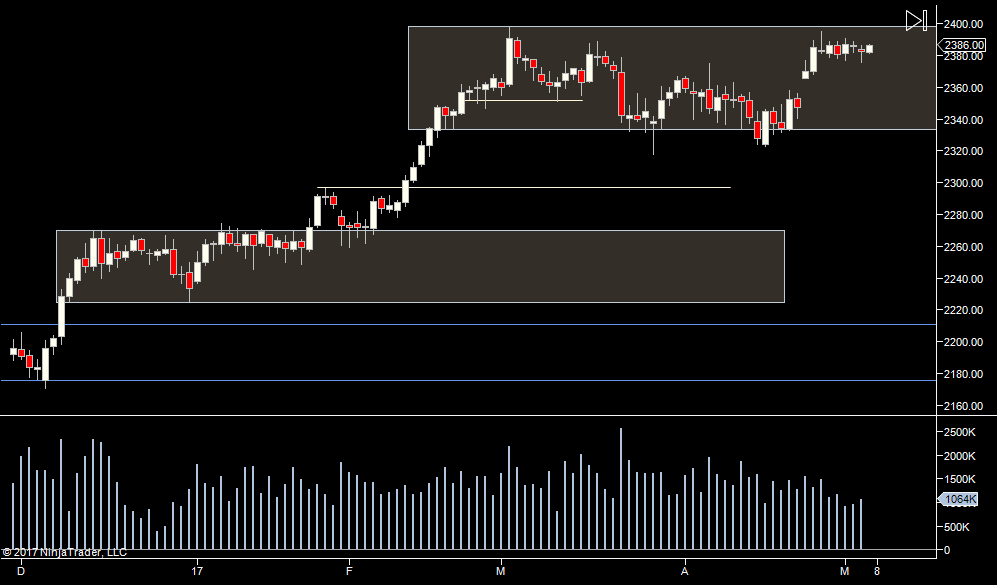The range filled out some more yesterday, so the chop zone is now 2381.25 to 2387