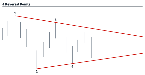 In the world of technical analysis, there are 4 major triangle patterns that can signal either trend continuation or trend reversal after a period of consolidation; symmetrical, descending, ascending and expanding. These patterns consist of 2 diverging trend lines, and must contain a minimum of 4 reversal points in order to be considered a triangle.